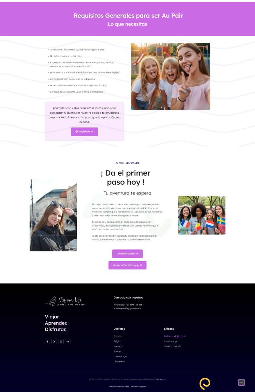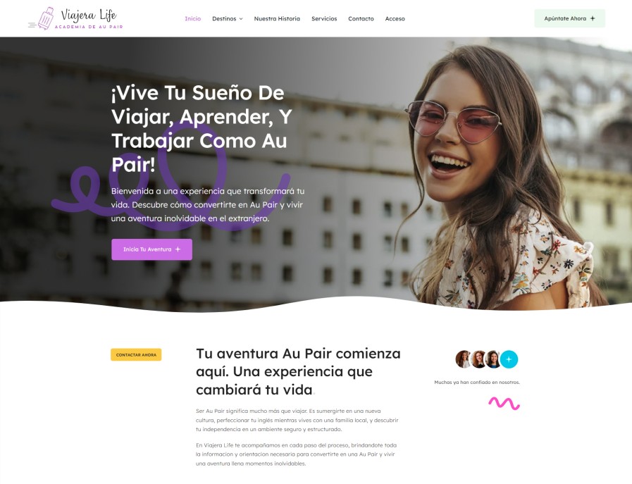 En Iberotecno hemos desarrollado la nueva página web de Viajera Life, una academia especializada en programas Au Pair para jóvenes que quieren vivir una experiencia internacional, aprender idiomas y viajar de una forma diferente.