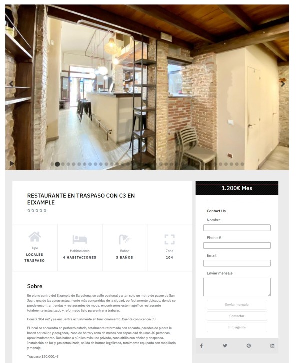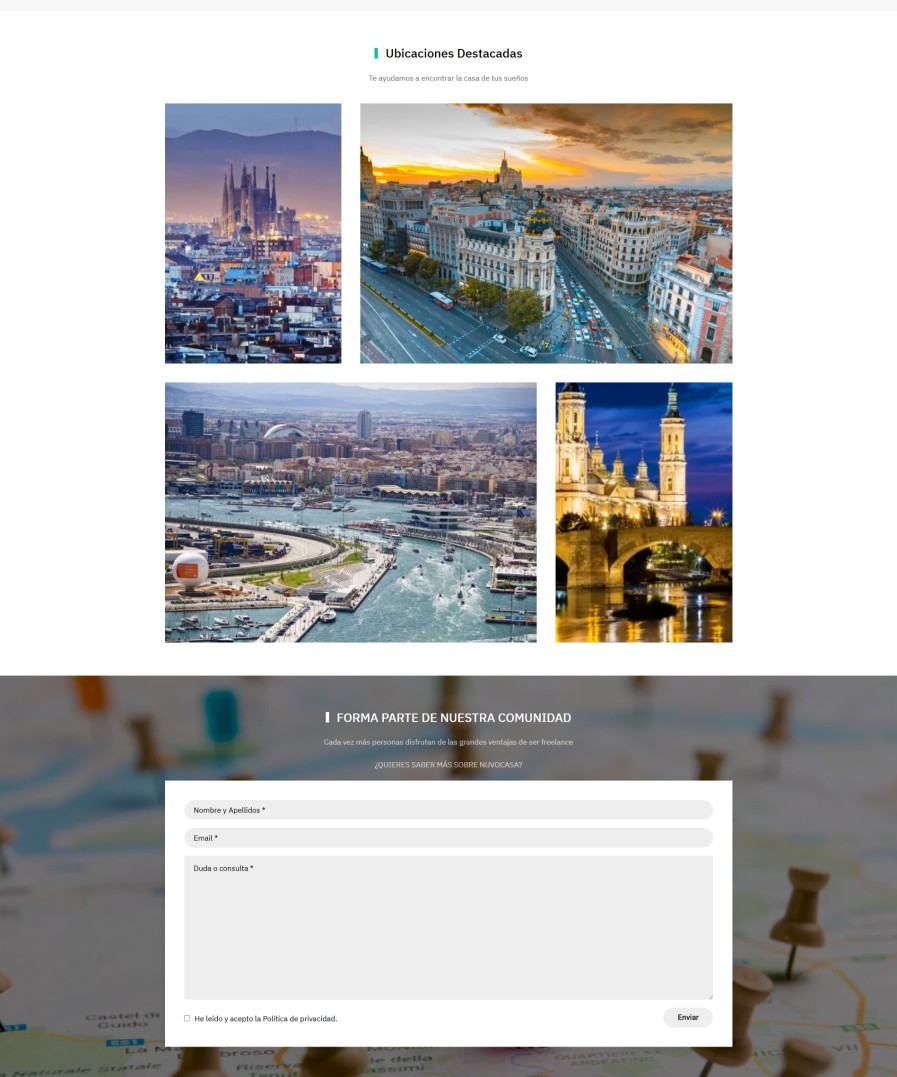 Por ese motivo la plataforma integra diferentes formularios y botones de contacto que permiten a los visitantes enviar consultas o solicitar información sobre un inmueble. Por ejemplo en el listado de inmuebles o en la página de cada piso o casa en particular.